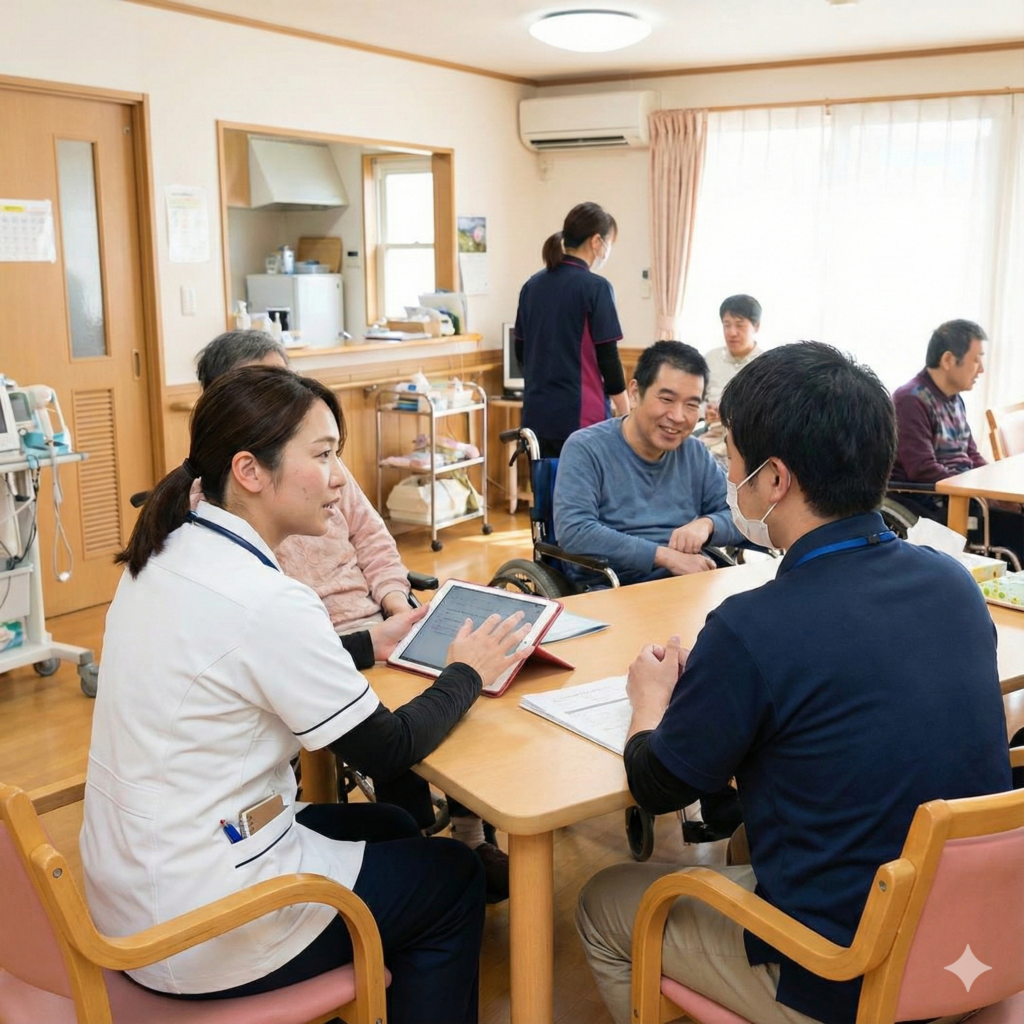 利用者の体調や気分の変化を医療の視点から支え、生活支援スタッフと連携して安心を届ける仕事です。