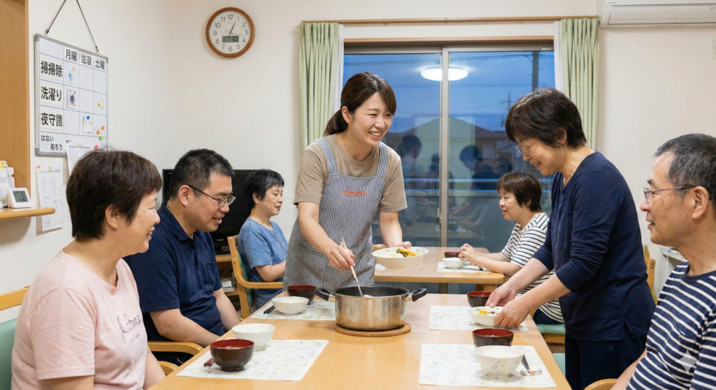 - 食事の調理・提供、バイタルチェック