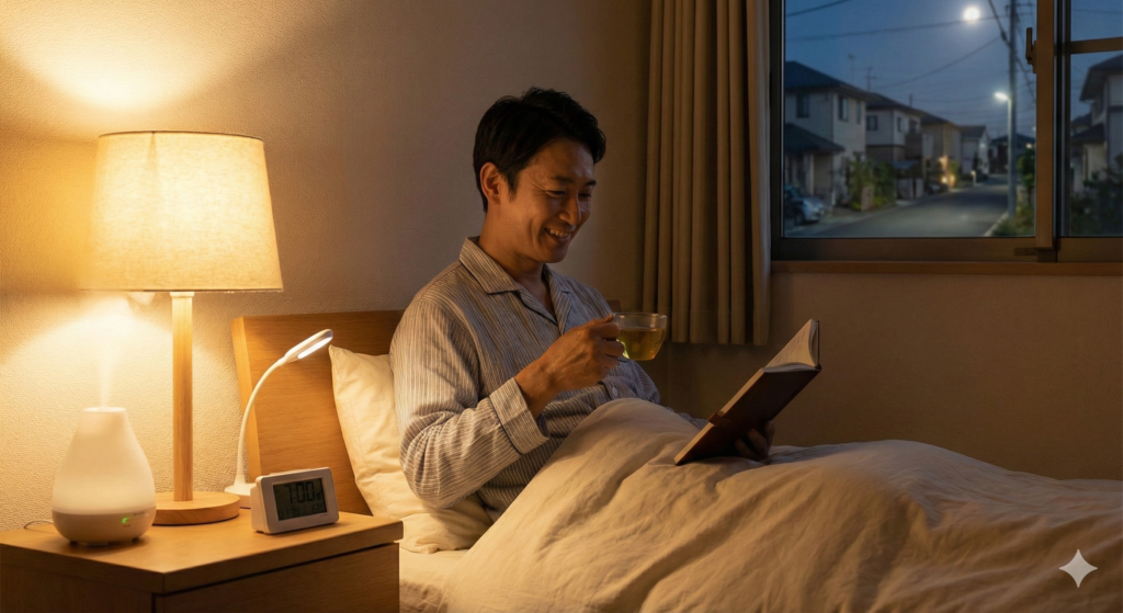 照明や食事時間、入浴のタイミングを整えることで、徐々に自然な眠気が戻り、